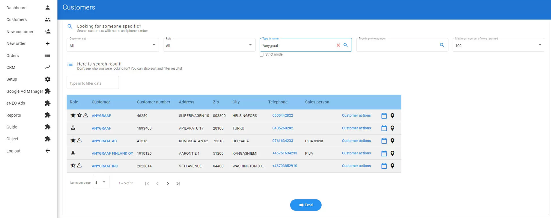All customer information on one card. The customer card containing the customer's basic information and the card's detailed tabs manage all customer information in AProfit. You can search for information by, for example, the customer's name, phone number or customer number.