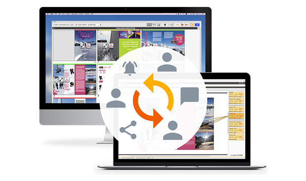 Collaborate in K4 so global teams can work together and communicate in one system. Enable writing, designing, photo editing, editorial review and manager’s approval to proceed simultaneously and collaboratively. Send and receive messages or emails and request content to be reviewed. Attach sticky notes to layouts for a visual communication approach.